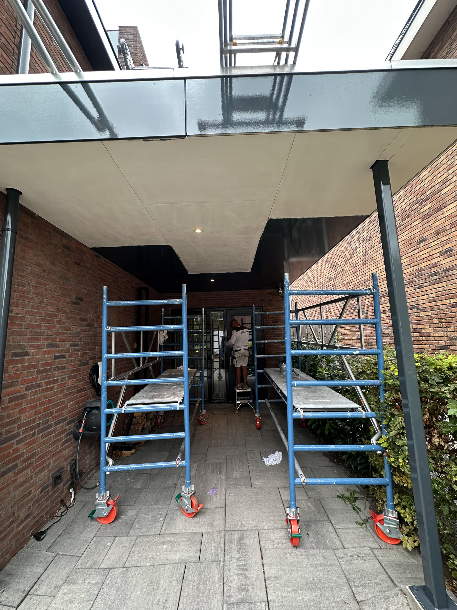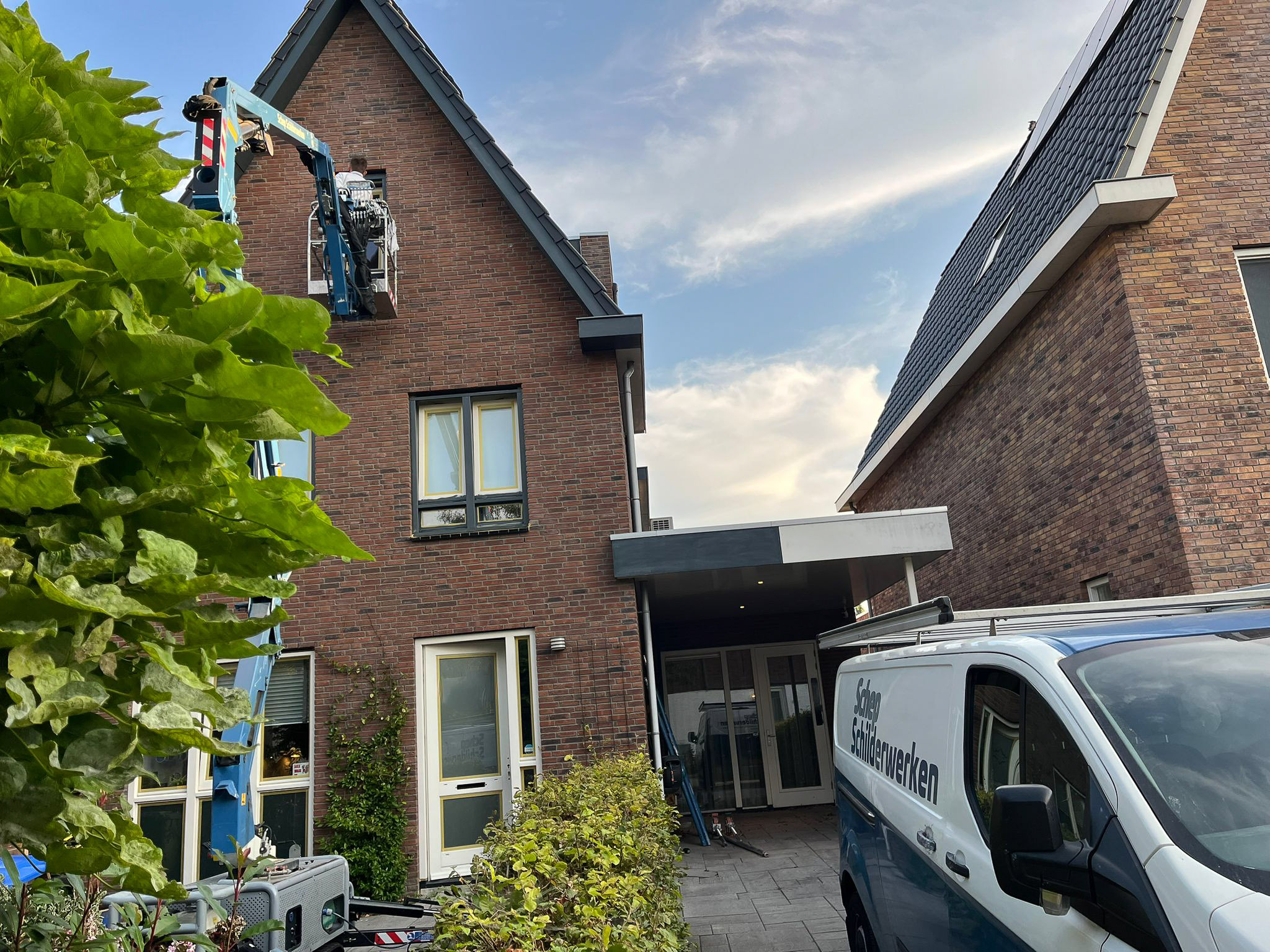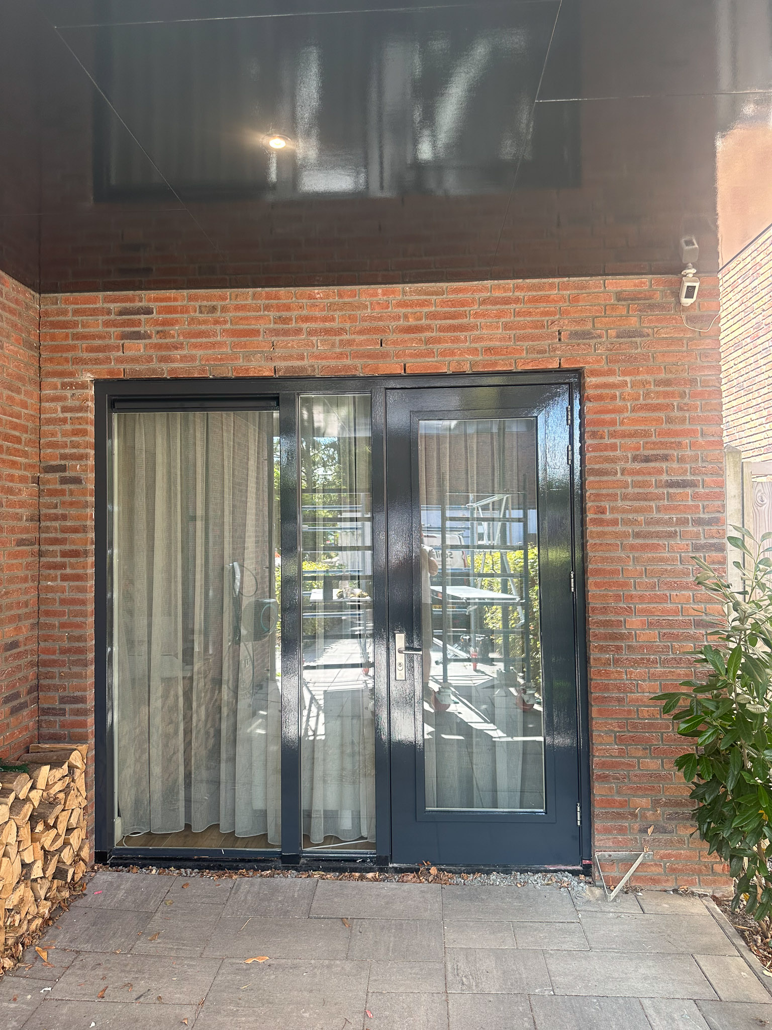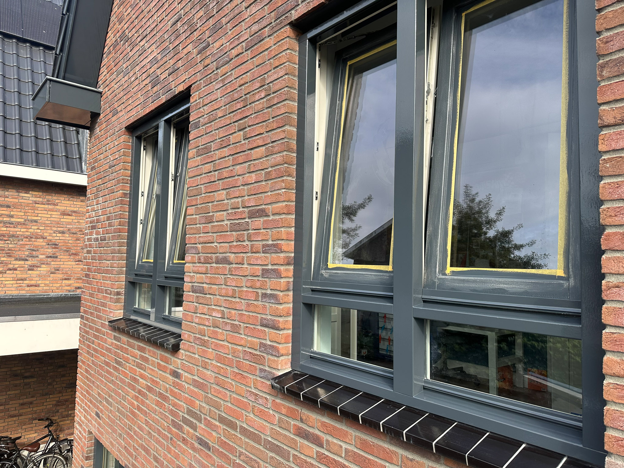 Bij deze schilderklus is zorgvuldig gewerkt aan de voorbereiding, want een goed eindresultaat begint bij de juiste ondergrondbehandeling. De aluminium profielen en kitnaden zijn eerst behandeld met een hechtprimer op kleur, zodat de verf optimaal hecht en lang meegaat. Daarna zijn alle delen voorzien van grondverf en afgewerkt met een hoogwaardige hoogglans aflak. Dit zorgt niet alleen voor een duurzame bescherming tegen weersinvloeden, maar ook voor een chique afwerking die jarenlang mooi blijft. Met professioneel schilderwerk in Schoonhoven voorkom je problemen als afbladderende verf of houtrot en geniet je langer van een woning die er tot in de puntjes verzorgd uitziet.